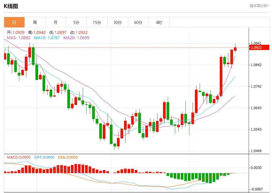 今日周一,截止目前欧元兑美元报1.0923,上涨0.09%。 欧元基本面行情分析 据今日俄罗斯电视台网站11月17日报道,欧洲央行行长克里斯蒂娜·拉加德17日警告称,日益加剧的地缘政治紧张局势可能加速世界经济的去全球化进程,这对所有人来说都影响深远。 拉加德表示,欧洲目前正