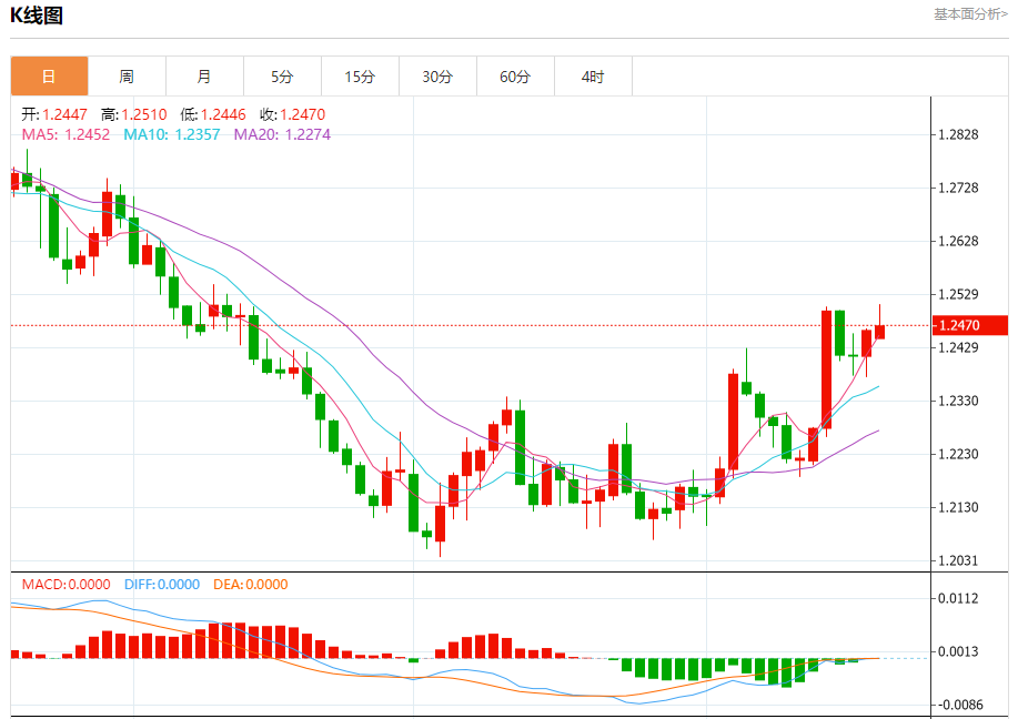 周一盘中,英镑/美元报1.2475,涨幅0.10%。 今日分析:在1.2460之上,看涨,目标价位为1.2510,然后为1.2550。 技术点评:RI技术指标缺乏下降动能 支撑位:1.24601.24351.2400 阻力位:1.25751.25501.2510 (亚汇网编辑:冰凡)