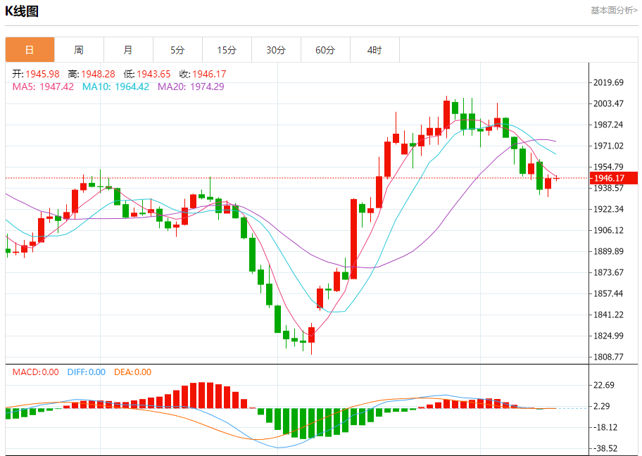 周二盘中,现货黄金报1945.32,跌幅0.03%。 今日分析:在1938.00之上,看涨,目标价位为1952.00,然后为1958.00。 技术点评:RI技术指标看涨,有进一步上升空间。 支撑位:1938.001933.001927.00 阻力位:1965.001958.001952.00 (亚汇网编辑:冰