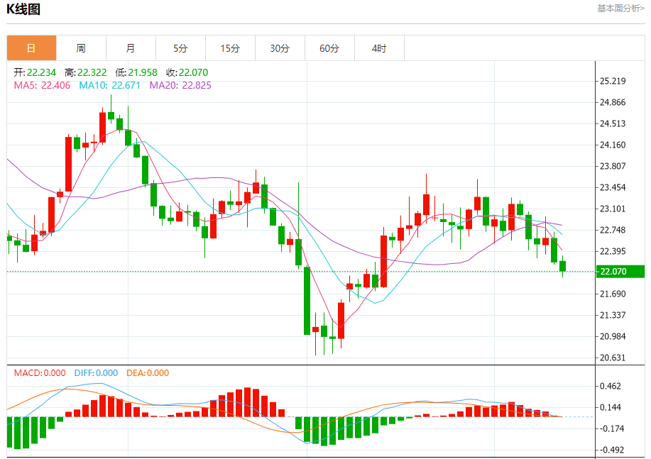 周一盘中,现货白银报22.101,跌幅0.52%。 今日分析:在22.25之下,看跌,目标价位为21.95,然后为21.80。 技术点评:只要22.25阻力位不被突破,向下跌破21.95位置的风险很高。 支撑位:21.9521.8021.60 阻力位:22.5822.4322.25 (亚汇网编辑:冰