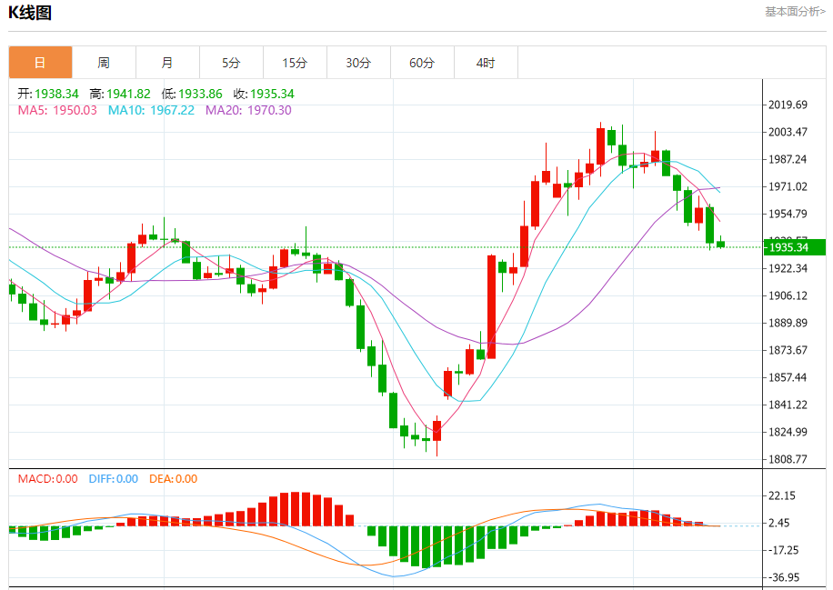 周一盘中,现货黄金报1936.38,跌幅0.07%。 今日分析:在1944.00之下,看跌,目标价位为1933.00,然后为1927.00。 技术点评:只要1944.00阻力位不被突破,向下跌破1933.00位置的风险很高。 支撑位:1933.001927.001920.00 阻力位:1954.001949.001944.00