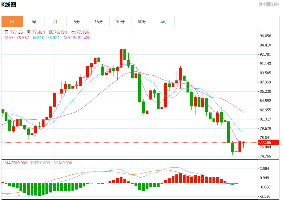 周一盘中,WTI原油报77.229,跌幅0.22%。 今日分析:在76.25之上,看涨,目标价位为77.70,然后为78.80。 技术点评:RI技术指标看涨,有进一步上升空间。 支撑位:76.2575.3574.95 阻力位:79.7078.8077.70 (亚汇网编辑:冰凡)