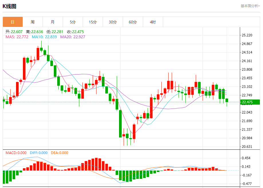 周三盘中,现货白银报22.568,跌幅0.16%。 今日分析:在22.65之下,看跌,目标价位为22.05,然后为21.90。 技术点评:只要依旧存在22.65阻力位,价格波动存在看跌的趋势。 支撑位:22.0521.9021.75 阻力位:22.9022.7522.65 (亚汇网编辑:冰凡)