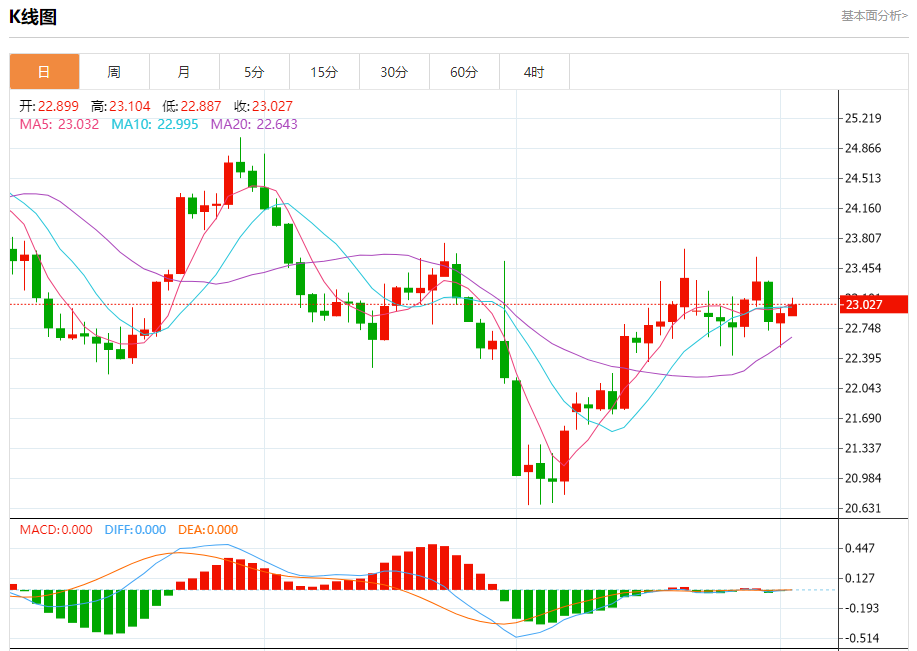周四盘中,现货白银报23.034,涨幅0.48%。 今日分析:在22.75之上,看涨,目标价位为23.20,然后为23.40。 技术点评:RI技术指标向上运行。 支撑位:22.7522.5022.30 阻力位:23.6023.4023.20 (亚汇网编辑:冰凡)