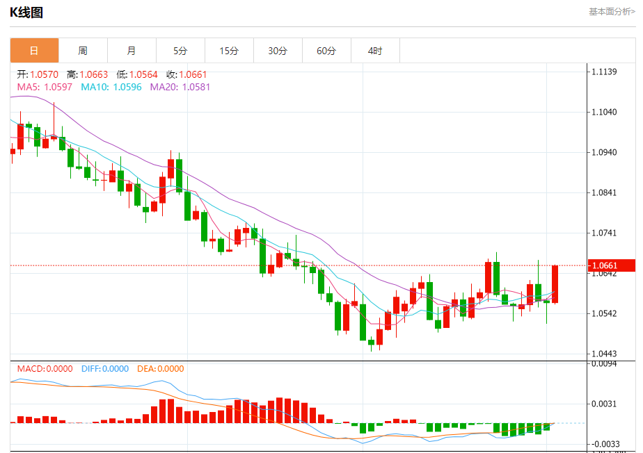 周四盘中,欧元/美元报1.0664,涨幅0.89%。 今日分析:在1.0590之上,看涨,目标价位为1.0665,然后为1.0685。 技术点评:RI技术指标看涨,有进一步向上趋势。 支撑位:1.05901.05751.0560 阻力位:1.06951.06851.0665 (亚汇网编辑:冰凡)