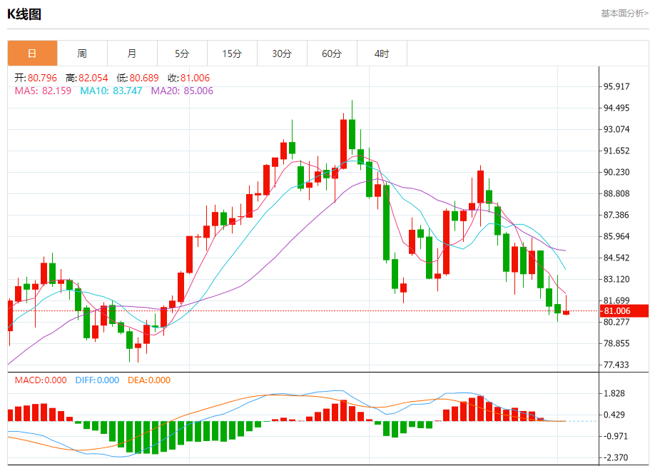 周四盘中,WTI原油报81.120,涨幅0.29%。 今日分析:在80.75之上,看涨,目标价位为82.45,然后为83.40。 技术点评:RI技术指标向上运行。 支撑位:80.7580.3079.80 阻力位:84.1583.4082.45 (亚汇网编辑:冰凡)