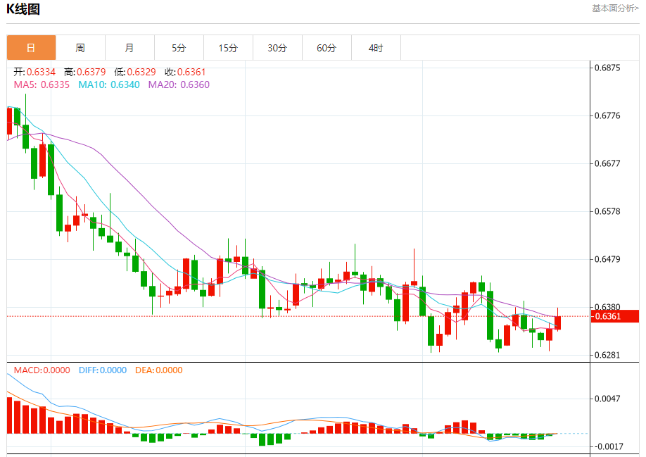 今日周二,澳元兑美元报0.6361,涨幅0.41%;美元兑加元报1.3700,涨幅0.05%;美元兑瑞郎报0.8940,涨幅0.32%。 澳元兑美元汇率分析 技术点评:RI技术指标缺乏下降动能 阻力位:0.64100.64000.6380 支撑位:0.63350.63250.6310 美元兑加元汇率分析
