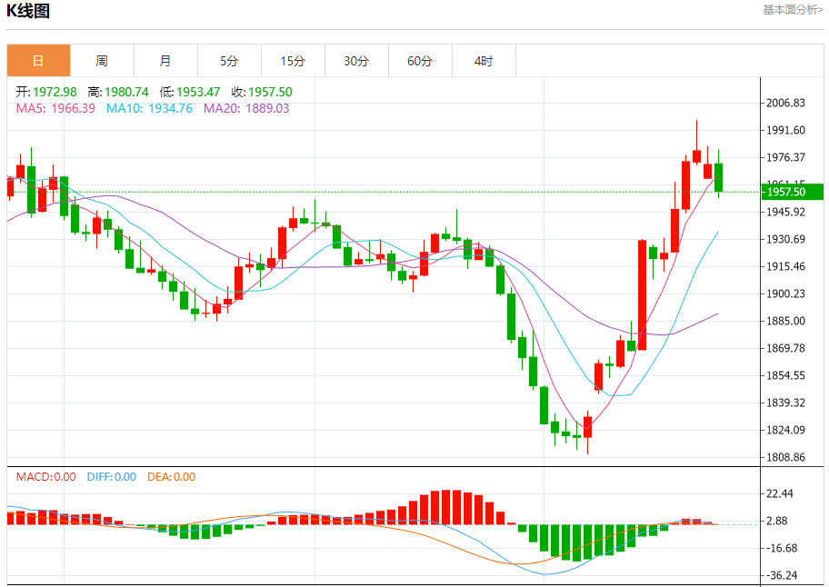 周一盘中,现货黄金报1980.23,跌幅0.00%。 今日分析:在1972.00之上,看涨,目标价位为1990.00,然后为1997.00。 技术点评:RI技术指标看涨,有进一步上升空间。 支撑位:1972.001964.001955.00 阻力位:2000.001997.001990.00 (亚汇网编辑:冰
