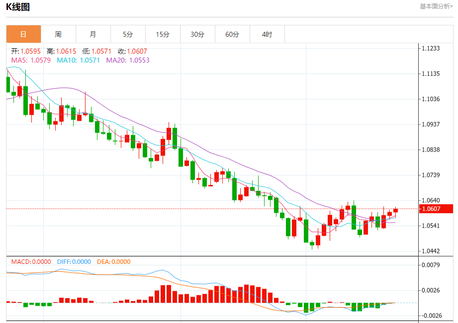 周一晚间,美元指数现报106.111,跌幅0.03%,现对美元兑欧元、英镑、日元主要货币对分析表述如下: 欧元/美元 汇价高见1.0615,低见1.0571。上一交易日,汇价收于1.0594。 基本面:一些欧洲大型基金管理公司表示,投资者押注欧洲央行不会再加息是错误的。欧元区作为一个能源