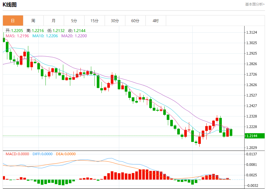 周二盘中,英镑/美元报1.2143,跌幅0.56%。 今日分析:在1.2190之下,看跌,目标价位为1.2140,然后为1.2120。 技术点评:RI技术指标运行趋势复杂,倾向于下跌。 支撑位:1.21401.21201.2105 阻力位:1.22501.22201.2190 (亚汇网编辑:冰凡)