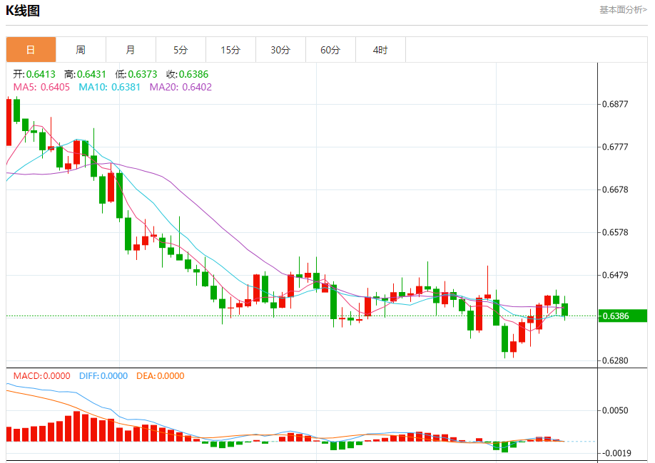 今日周四,澳元兑美元报0.6387,跌幅0.42%;美元兑加元报1.3590,跌幅0.02%;美元兑瑞郎报0.9028,涨幅0.07%。 澳元兑美元汇率分析 技术点评:RI技术指标向下运行。 阻力位:0.64600.64450.6430 支撑位:0.63850.63700.6355 美元兑加元汇率分析