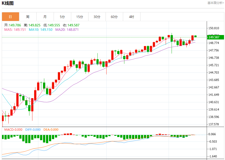 今日周五,截止目前美元兑日元报149.604,下跌0.14%。 日元基本面行情分析 日本央行周五公布的一项季度调查显示,日本家庭的通胀预期在截至9月份的三个月里略有上升。该调查将是日本央行在10月30-31日政策评估中制定新的通胀预测时将仔细考虑的因素之一。 9月份调查显示,预