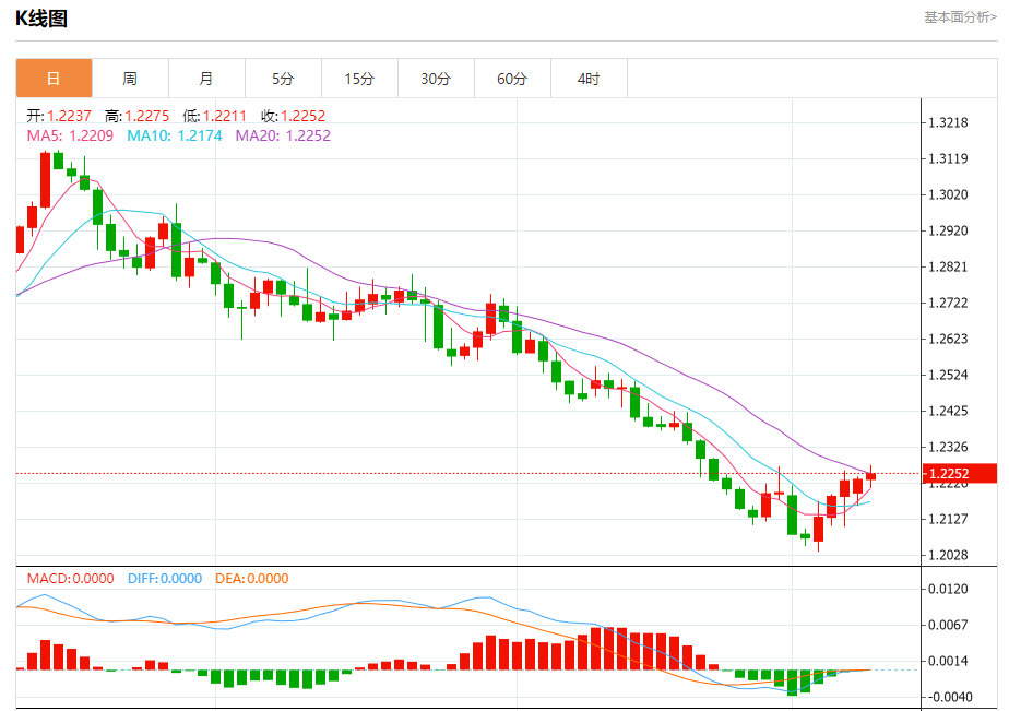 周二盘中,英镑/美元报1.2254,涨幅0.09%。 今日分析:在1.2210之上,看涨,目标价位为1.2275,然后为1.2300。 技术点评:RI技术指标运行趋势复杂,倾向于上涨。 支撑位:1.22101.21851.2160 阻力位:1.23301.23001.2275 (亚汇网编辑:冰凡)