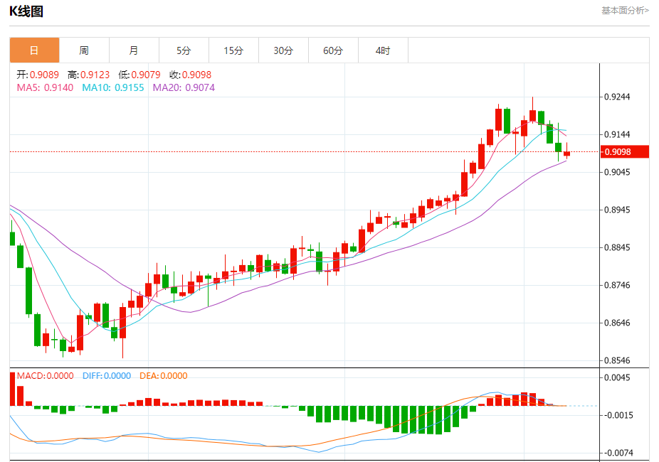 周一纽盘,瑞郎兑美元交投于0.9101,跌幅为0.01%。 瑞郎基本面分析 10月9日,瑞银发报告指,内地9月经济增长稳定,黄金周铁路、航空运输强劲。瑞银中国活动指数9月同期稳定在3%左右,不过受房地产疲软影响,第三季GD年料同比增4.4%。 对于即将发布的9月数据,瑞银预计房地产