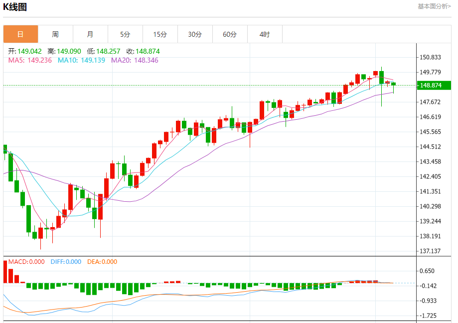 今日周四,截止目前美元兑日元报148.835,下跌0.20%。 日元基本面行情分析 根据周四日本央行公布的经常账户余额预估初值,分析师认为,周二日元汇率跌破150后,日本央行并未干预市常货币经纪商CtralTahiCo.的首席经理YoukTakahaa表示,如果当局进行了干预,政府资金流动应该会出现
