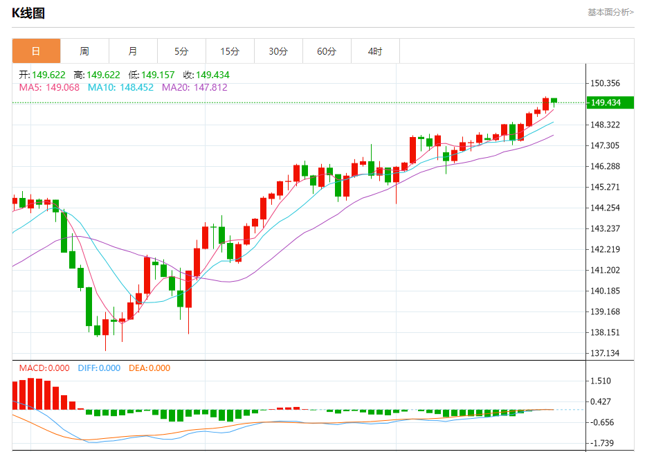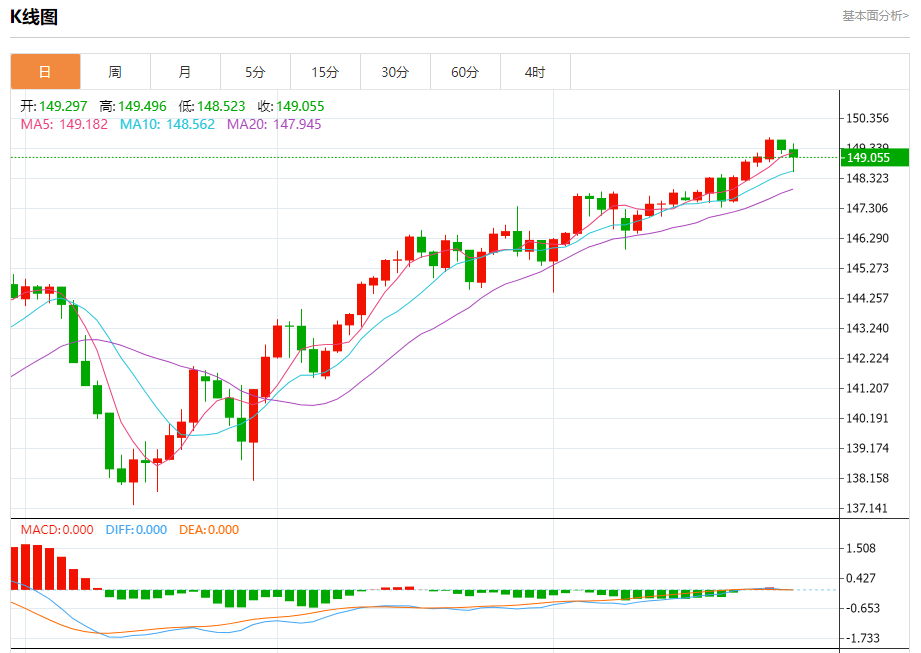 周四盘中,美元/日元报149.452,跌幅0.12%。 今日分析:在149.55之下,看跌,目标价位为149.10,然后为148.95。 技术点评:RI技术指标运行趋势复杂,倾向于下跌。 支撑位:149.10148.95148.85 阻力位:149.90149.70149.55 (亚汇网编辑:冰凡)