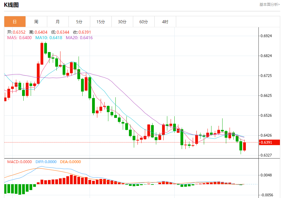 澳元/美元基本面分析: 由于澳洲国债收益率持续飙升,且当地零售销售和就业数据为下个月延长暂停加息增加了理由,澳元兑美元汇率徘徊在1澳元兑0.6371美元附近,从隔夜触及的11个月新低0.6332反弹。支撑位在0.6358处不稳定,如果该水平再次突破,空头将瞄准0.6170。 据了解,澳洲基准10年期