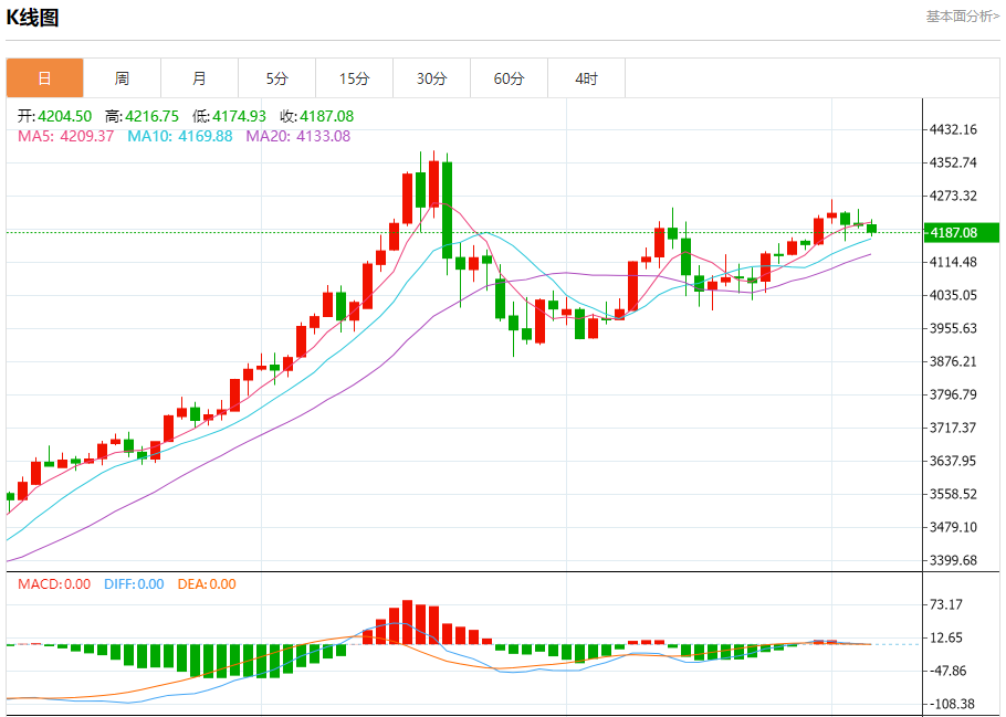 周四盘中,现货黄金报4191.44,跌幅0.27%。 今日分析:在4174之上,看涨,目标价位为4229,然后为4243。 技术点评:超短线(当日内)技术指标运行趋势复杂,应谨慎操作。 支撑位:417441624148 阻力位:426442434229 (亚汇网编辑:冰凡)