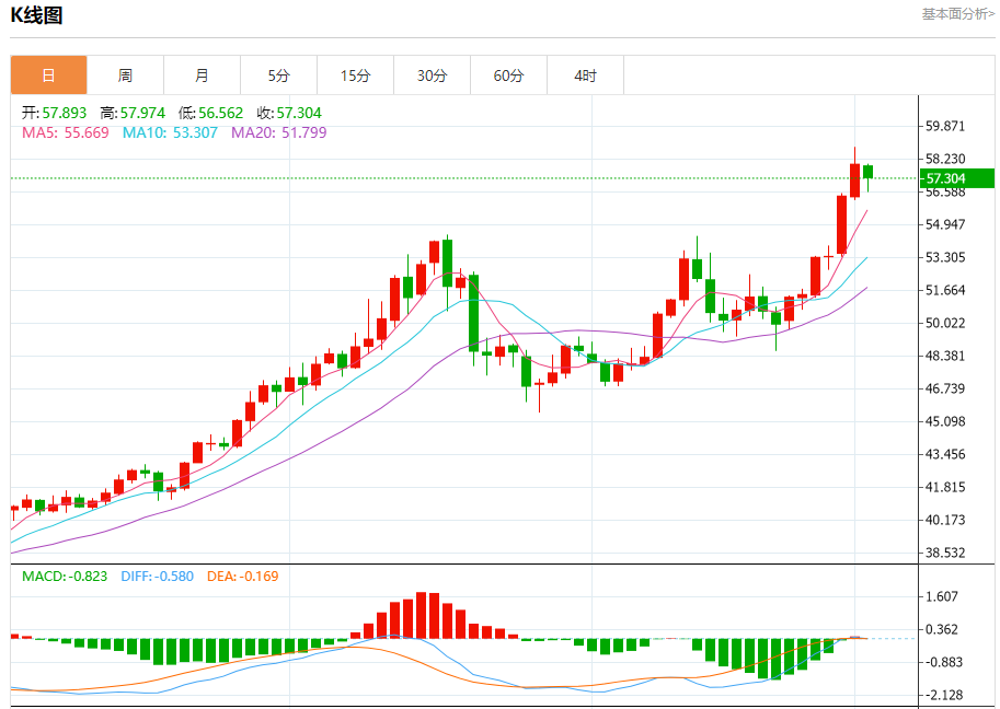 周二盘中,现货白银报57.307,跌幅1.15%。 今日分析:在57.00之上,看涨,目标价位为59.00,然后为60.00。 技术点评:RI技术指标在50%中性区域附近。 支撑位:57.0056.4555.50 阻力位:61.0060.0059.00 (亚汇网编辑:冰凡)