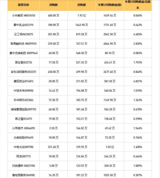 10月17日港股回购概况: 方正控股(00418)、摩比发展(00947)、网龙(00777)、希玛眼科(03309)、VITAOYIT'L(00345)、蒙牛乳业(02319)、信利国际(00732)、固生堂(02273)、归创通桥-(02190)、碧桂园服务(06098)、天福(06868)、普华和顺(01358)、燕之屋(01497)、首佳科技(00