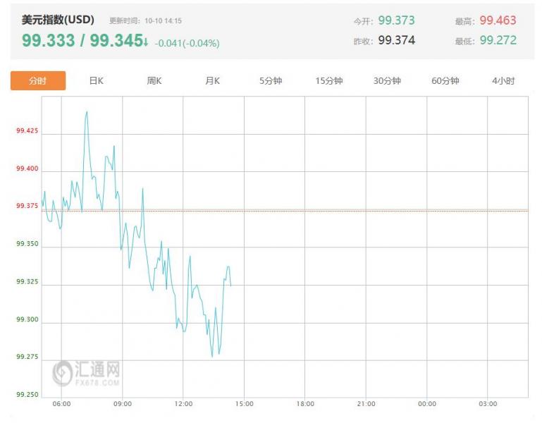 周五(10月10日)亚洲交易时段,美元小幅走跌,最新美元指数报99.345,跌幅0.04%,昨日美盘时段美元指数攀升至8月以来最高水平,美联储会议纪要进一步巩固了美元的强势地位。 美联储最新动态一览 美联储9月会议纪要中的鹰派基调为美元提供了支撑。尽管官员们一致认为,鉴于劳动力市场增速