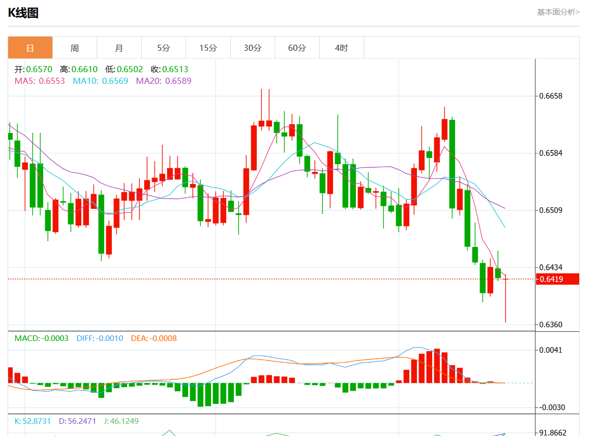 周五盘中,澳元/美元报0.6421,涨幅0.01%。 今日分析:在0.6385之上,看涨,目标价位为0.6440,然后为0.6455。 技术点评:RI技术指标向上运行。 支撑位:0.64700.64550.6440 阻力位:0.63850.63600.6345 (亚汇网编辑:静香)
