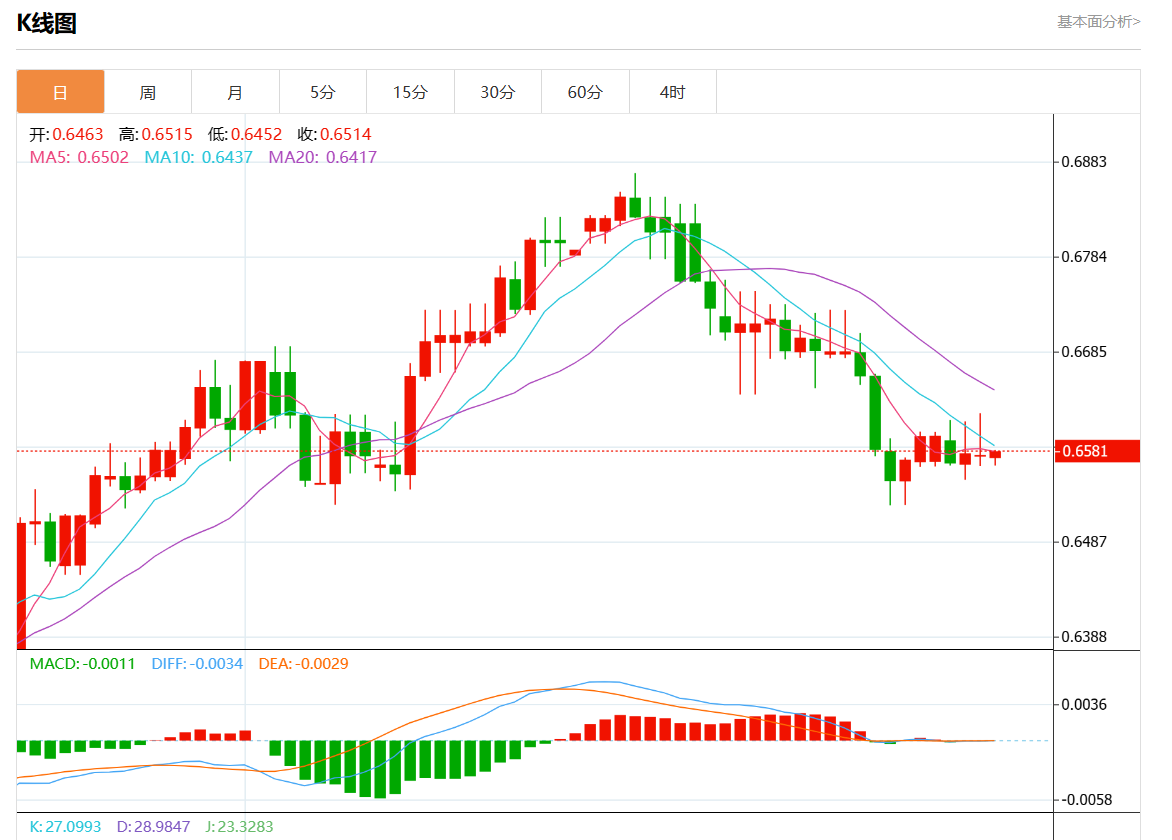周四盘中,澳元/美元报0.6581,涨幅0.06%。 今日分析:在0.6590下方做空头,目标在0.6555和0.6540。 技术点评:只要阻力位0.6590不被突破,跌破0.6555的风险仍然很高。 支撑位:0.66200.66050.6590 阻力位:0.65550.65400.6525 (亚汇网编辑:静香