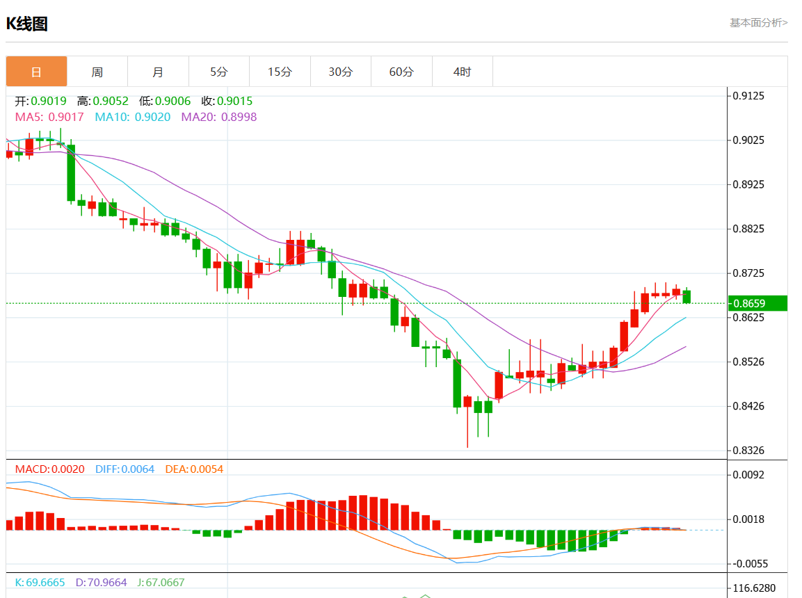 周二盘中,美元/瑞元报0.8657,跌幅0.37%。 今日分析:在0.8700下方做空,目标在0.8650和0.8630。 技术点评:近期趋势保持下降,势头强劲。 支撑位:0.87300.87150.8700 阻力位:0.86500.86300.8610 (亚汇网编辑:静香)