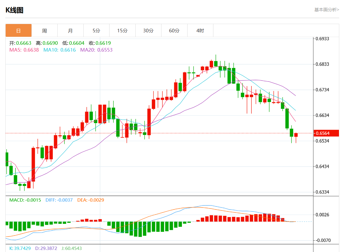周四盘中,澳元/美元报0.6563,涨幅0.18%。 今日分析:在0.6530之上,看涨,目标价位为0.6580,然后为0.6600。 技术点评:RI技术指标向上运行。 支撑位:0.66200.66000.6580 阻力位:0.65300.65100.6490 (亚汇网编辑:静香)