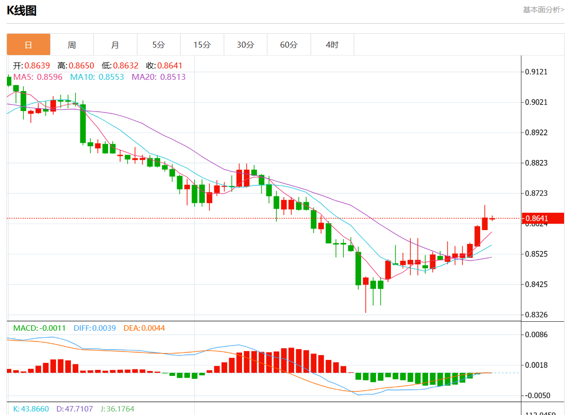 周四盘中,美元/瑞元报0.8640,跌幅0.03%。 今日分析:在0.8665之下,看跌,目标价位为0.8620,然后为0.8605. 技术点评:只要0.8665阻力位不被突破,向下跌破0.8620位置的风险很高。 支撑位:0.87000.86850.8665 阻力位:0.86200.86050.8590 (亚