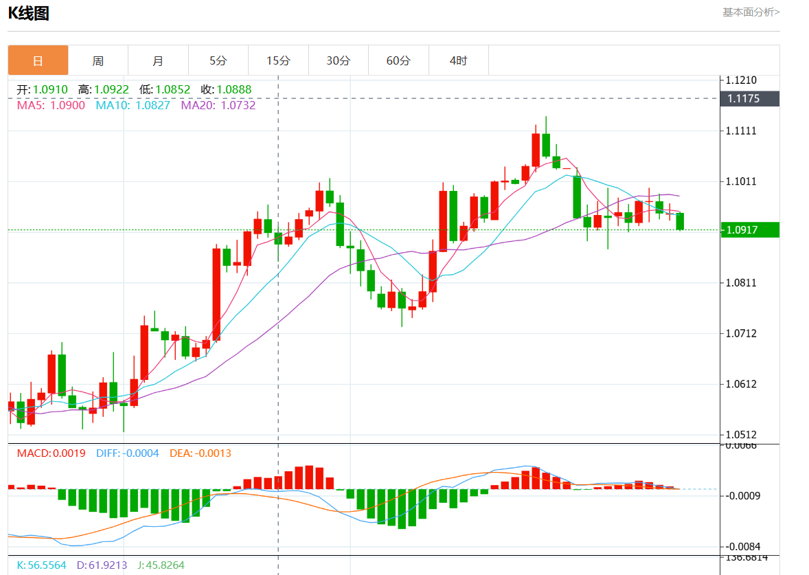 周二欧市盘中,欧元/美元最新报1.0917,日图跌0.28%. 今日分析:在1.0945之下,看跌,目标价位为1.0900,然后为1.0885。 技术点评:RI技术指标运行趋势复杂,倾向于下跌。 支撑位:1.09851.09651.0945 阻力位:1.09001.08851.0870 (亚汇网编辑: