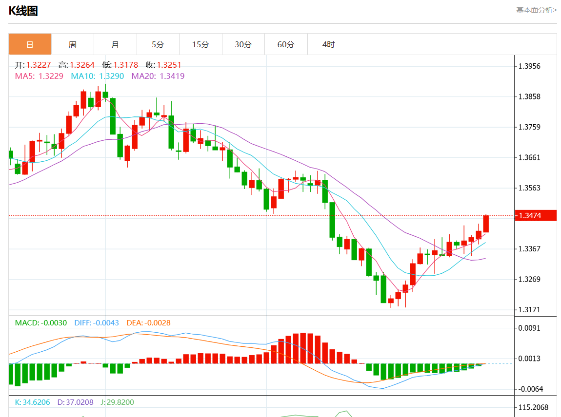周二盘中,美元/加元报1.3477,涨幅0.39%。 今日分析:在1.3440之上,看涨,目标价位为1.3500,然后为1.3520。 技术点评:RI技术指标看涨,有进一步上升空间。 支撑位:1.35401.35201.3500 阻力位:1.34401.34201.3400 (亚汇网编辑:静香)