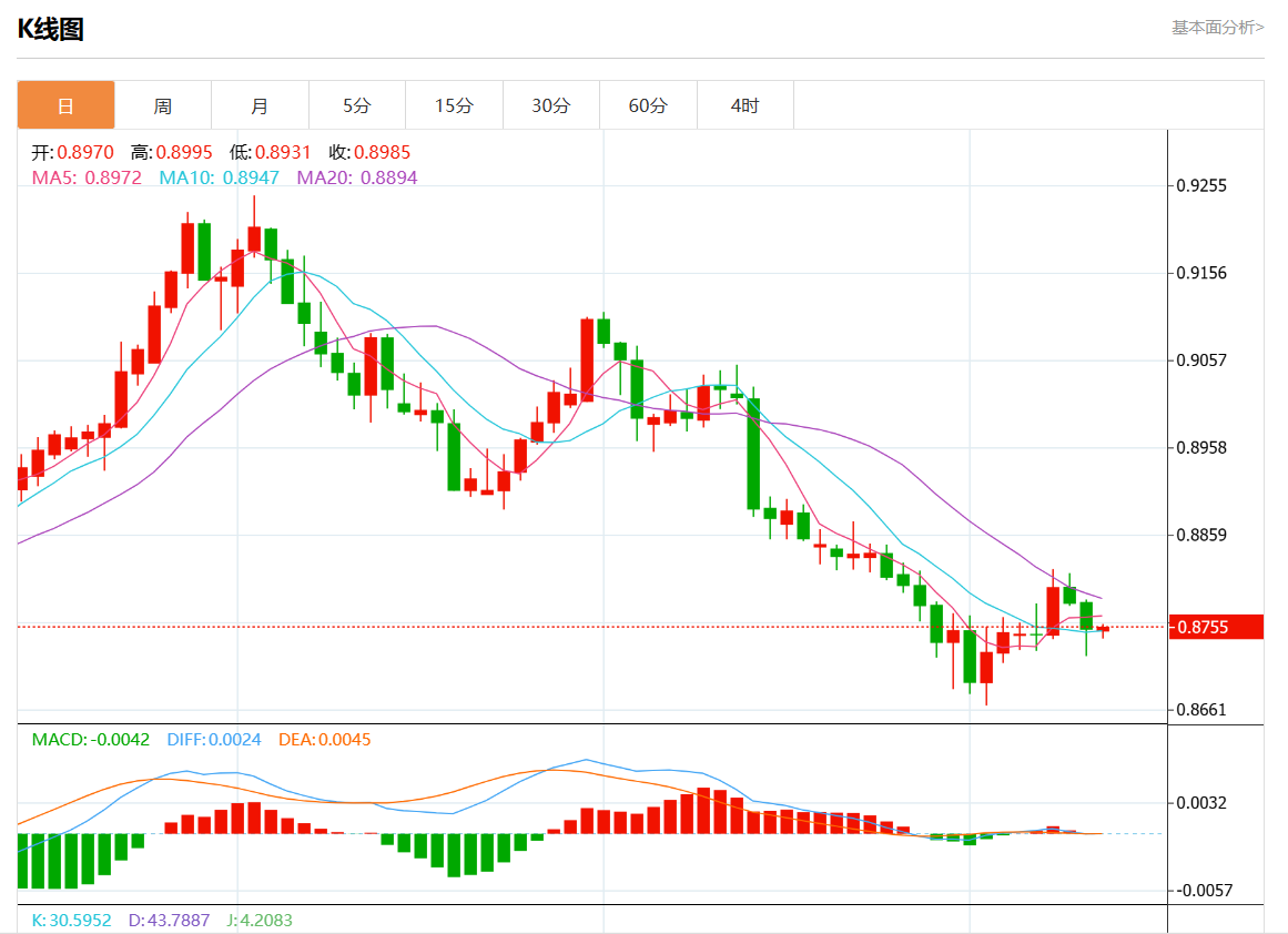 周三盘中,美元/瑞元报0.8762,涨幅0.10%。 今日分析:在0.8775下方做空,目标在0.8735和0.8720。 技术点评:只要阻力位不突破0.8775,跌破0.8735的风险仍然很高。 支撑位:0.88050.87900.8775 阻力位:0.87350.87200.8700 (亚汇网编辑:静香)
