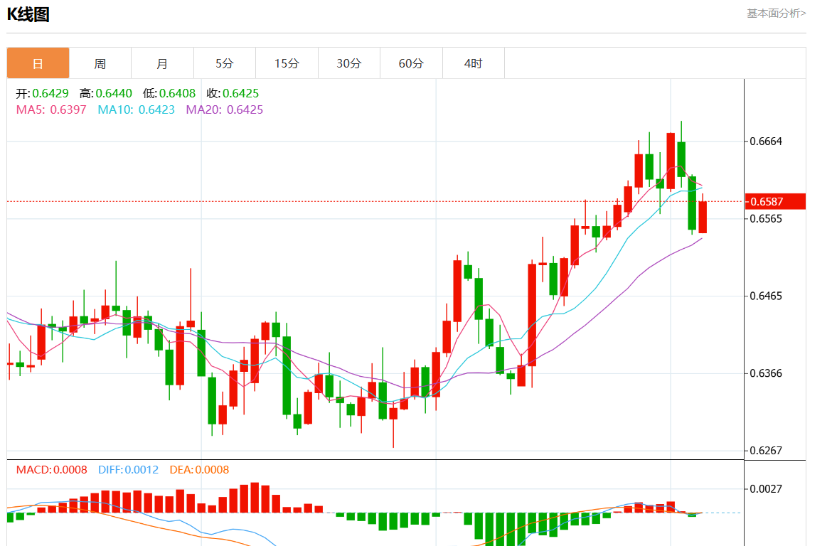 周三盘中,澳元/美元报0.6583,涨幅0.47%。 今日分析:在0.6565上方做多头,目标在0.6610和0.6640。 技术点评:RI呼吁新的上调。 支撑位:0.66650.66400.6610 阻力位:0.65650.65450.6530 (亚汇网编辑:静香)
