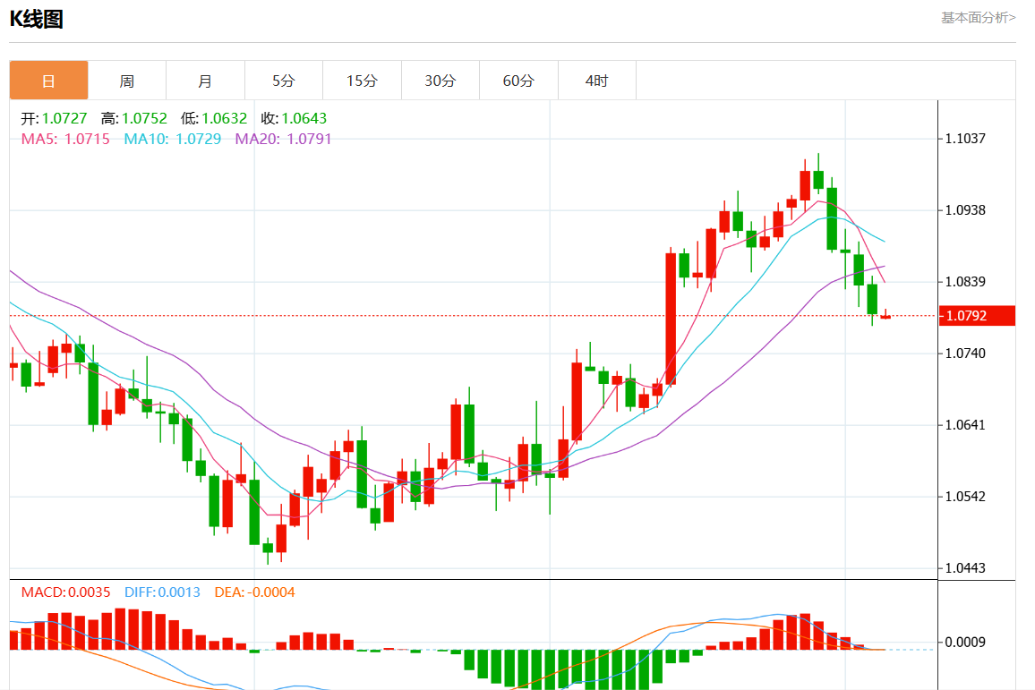 周三欧市盘中,欧元/美元最新报1.0789,日图跌0.06%. 今日分析:在1.0825下方做空,目标在1.0770和1.0745。 技术点评:只要不突破1.0825的阻力位,跌破1.0770的风险仍然很高。 支撑位:1.08651.08451.0825 阻力位:1.07701.07451.0720 (亚汇网编