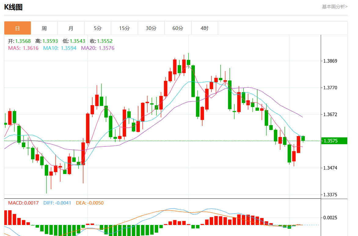 周三盘中,美元/加元报1.3576,跌幅0.11%。 今日分析:在1.3550上方做多头,目标在1.3595和1.3615。 技术点评:突破1.3550是一个积极的信号,已经打开了通往1.3595的路径。 支撑位:1.36401.36151.3595 阻力位:1.35501.35201.3500 (亚汇网编辑:
