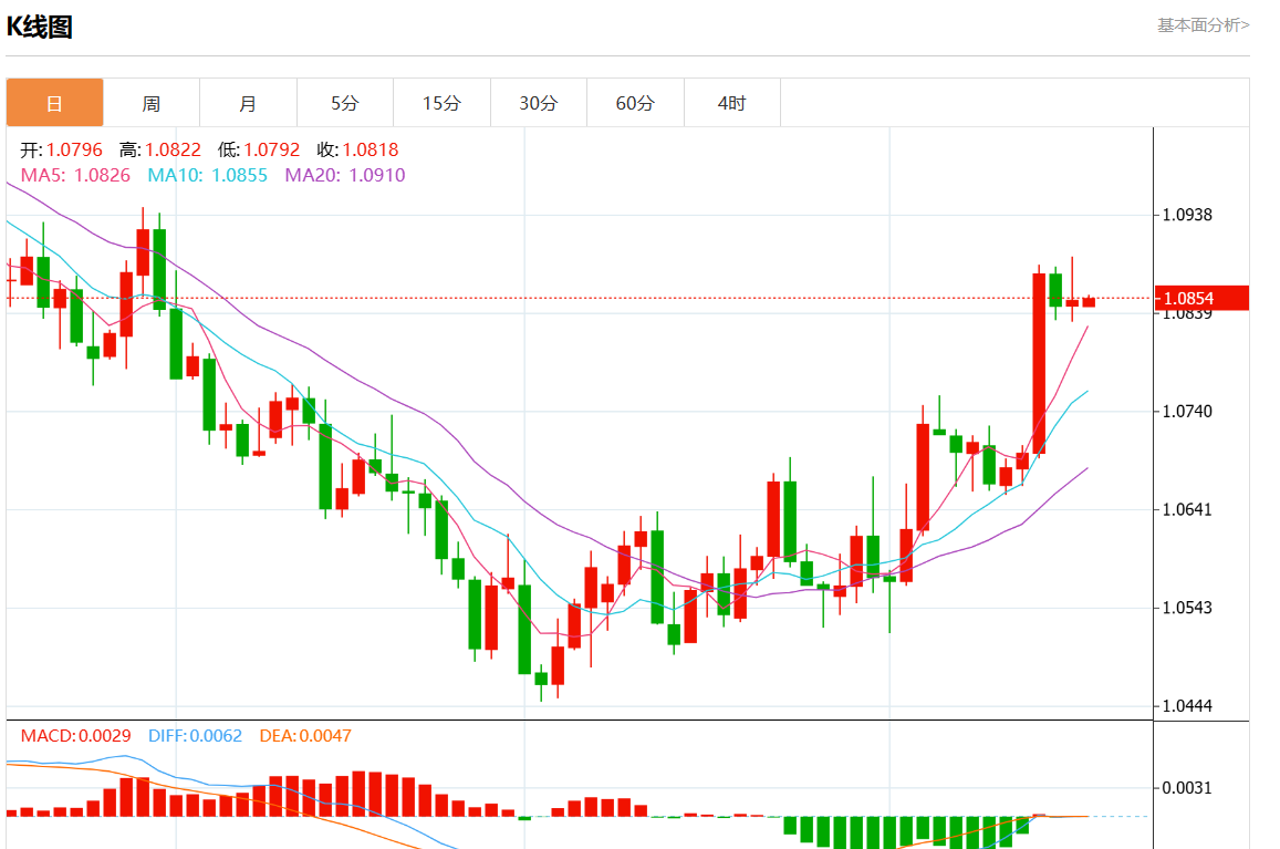 周五欧市盘中,欧元/美元最新报1.0854,日图涨0.02%. 今日分析:在1.0630上方做多头,目标在1.0950和1.1060。 技术点评:RI显示出上行动能。 支撑位:1.11501.10601.0950 阻力位:1.06301.05151.0445 (亚汇网编辑:静香)