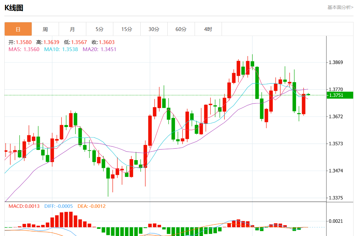 周五盘中,美元/加元报1.3752,跌幅0.02%。 今日分析:在1.3730上方做多头,目标在1.3775和1.3805。 技术点评:即使不能排除合并的延续,其程度也应受到限制。 支撑位:1.38401.38051.3775 阻力位:1.37301.37101.3685 (亚汇网编辑:静香)