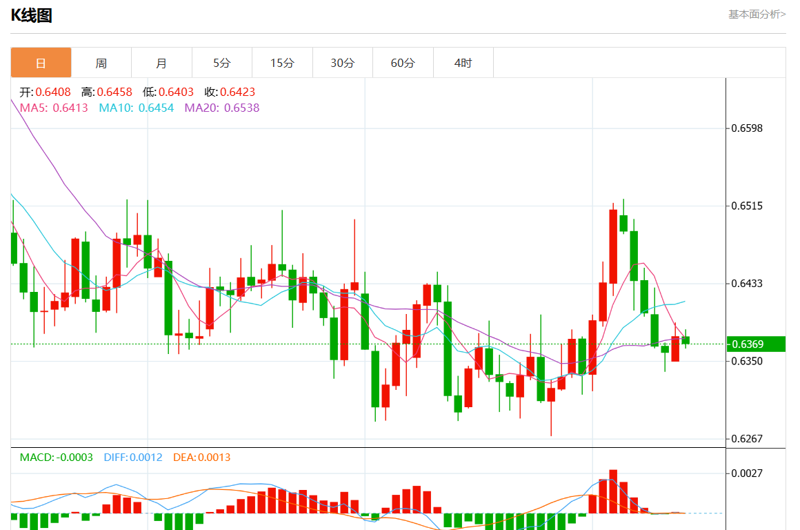 周二盘中,澳元/美元报0.6370,跌幅0.09%。 今日分析:在0.6390下方做空,目标在0.6340和0.6325。 技术点评:RI显示出下行动能。 支撑位:0.64250.64050.6390 阻力位:0.63400.63250.6310 (亚汇网编辑:静香)