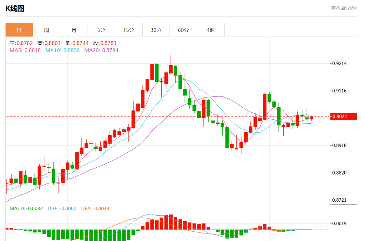 周二盘中,美元/瑞元报0.9023,涨幅0.08%。 今日分析:在0.9035下方做空,目标在0.9005和0.8990。 技术点评:只要0.9035是阻力位,就要寻找具有看跌偏见的震荡价格走势。 支撑位:0.90650.90500.9035 阻力位:0.90050.89900.8975 (亚汇网编辑:静