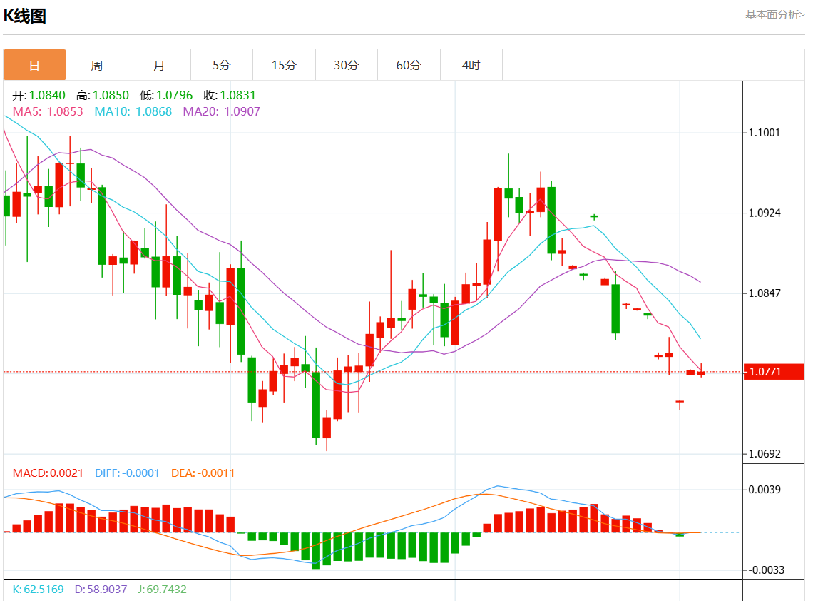 周三欧市盘中,欧元/美元最新报1.0770,日图涨0.01%. 今日分析:在1.0690之上,看涨,目标价位为1.0885,然后为1.1015。 技术点评:RI技术指标缺乏下降动能 支撑位:1.11401.10151.0885 阻力位:1.06901.06301.0515 (亚汇网编辑:静香)