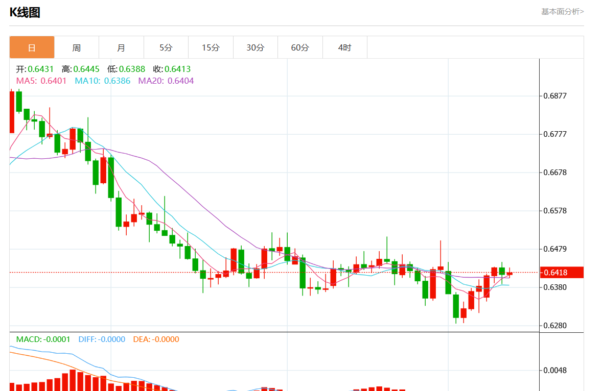周四盘中,澳元/美元报0.6414,涨幅0.02%。 今日分析:在0.6400上方建立多头头寸,目标在0.6445和0.6460。 技术点评:RI显示出上行势头。 支撑位:0.64800.64600.6445 阻力位:0.64000.63850.6370 (亚汇网编辑:静香)