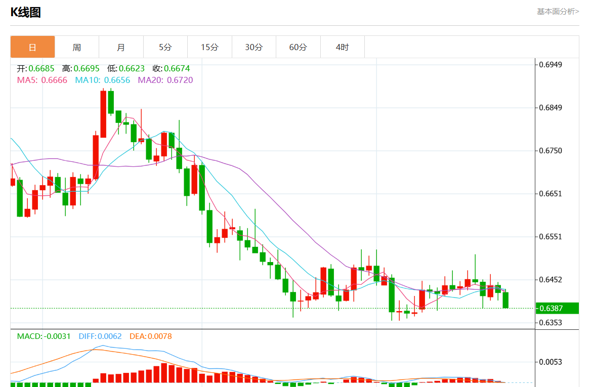 周二盘中,澳元/美元报0.6996,跌幅0.42%。 今日分析:空头头寸低于0.6435,目标在0.6400和0.6385延伸。 技术点评:只要没有突破0.6435的阻力位,跌破0.6400的风险仍然很高。 支撑位:0.64650.64500.6435 阻力位:0.64000.63850.6370 (亚汇网编辑
