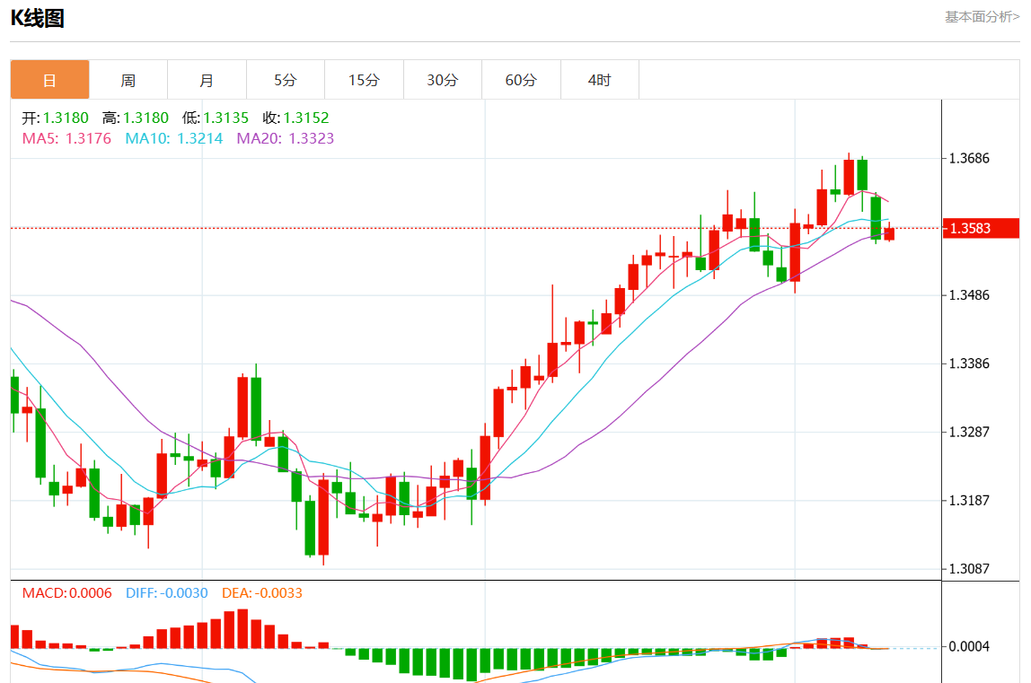 周二盘中,美元/加元报1.3581,涨幅0.10%。 今日分析:在1.3565上方建立多头头寸,目标在1.3600和1.3620。 技术点评:RI涨跌互现。 支撑位:1.36351.36201.3600 阻力位:1.35651.35451.3530