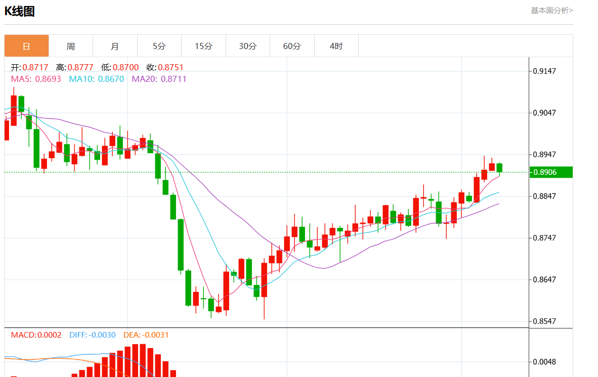 周五盘中,美元/瑞元报0.8906,跌幅0.22%。 今日分析:在0.8930下方做空,目标在0.8895和0.8880延伸。 技术点评:RI显示出下行势头。 支撑位:0.89600.89450.8930 阻力位:0.88950.88800.8865