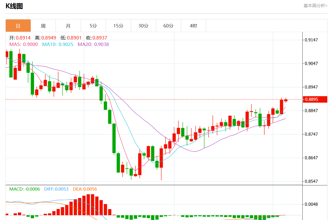 周三盘中,美元/瑞元报0.8891,跌幅0.02%。 今日分析:在0.8875上方建立多头头寸,目标在0.8905和0.8930扩展。 技术点评:RI涨跌互现。 支撑位:0.89500.89300.8905 阻力位:0.88750.88550.8835