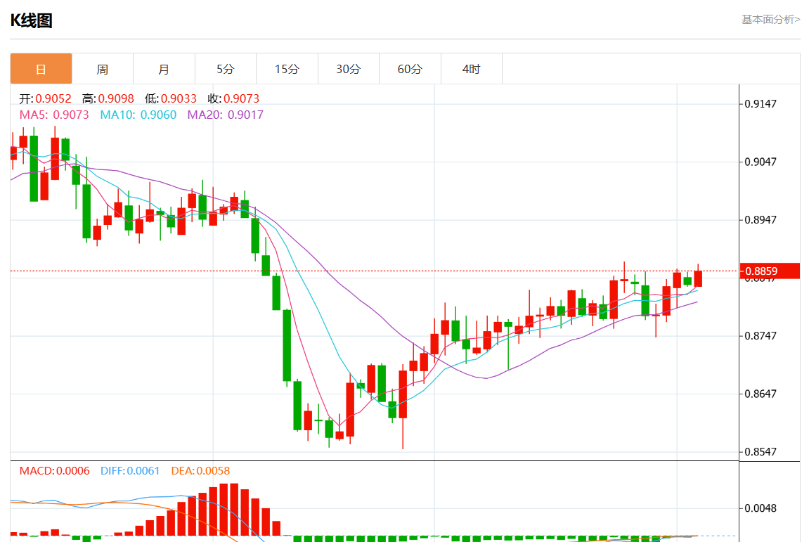 周二盘中,美元/瑞元报0.8865,涨幅0.33%。 今日分析:在0.8860下方做空,目标在0.8840和0.8830延伸。 技术点评:RI涨跌互现。 支撑位:0.88900.88750.8860 阻力位:0.88400.88300.8815