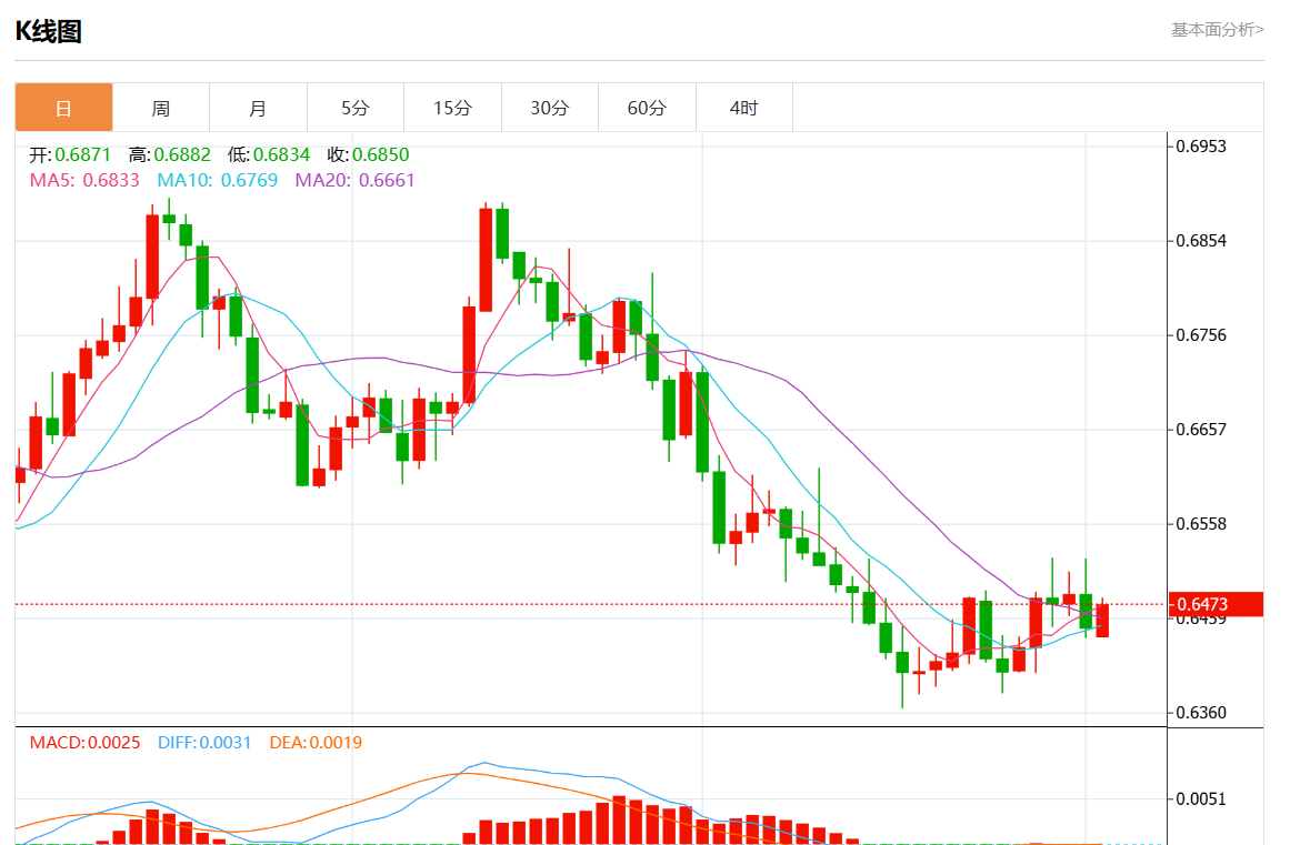 周一盘中,澳元/美元报0.6472,涨幅0.36%。 今日分析:在0.6440上方建立多头头寸,目标在0.6485和0.6500。 技术点评:RI显示出上行势头。 支撑位:0.65200.65000.6485 阻力位:0.64400.64200.6400