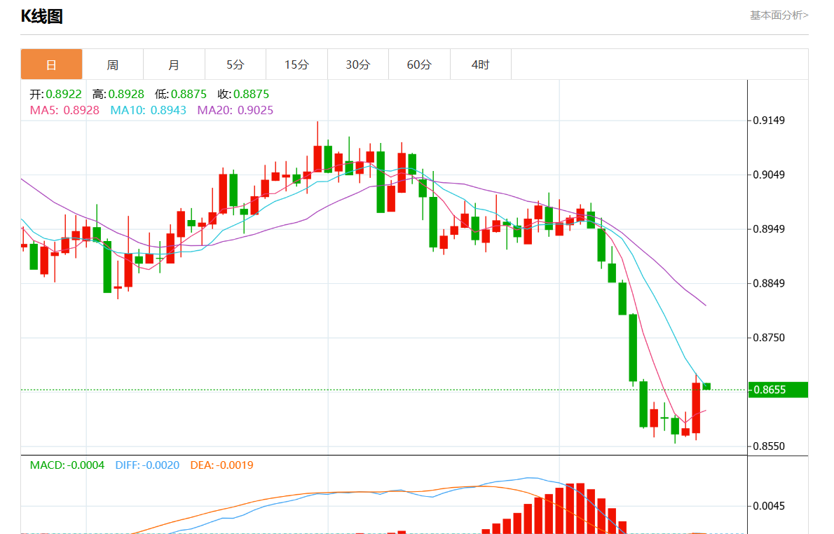 周五盘中,美元/瑞郎报0.8659,跌幅0.08%。 今日分析:在0.8635上方建立多头头寸,目标在0.8685和0.8700。 技术点评:RI涨跌互现。 支撑位:0.87200.87000.8685 阻力位:0.86350.86150.8590