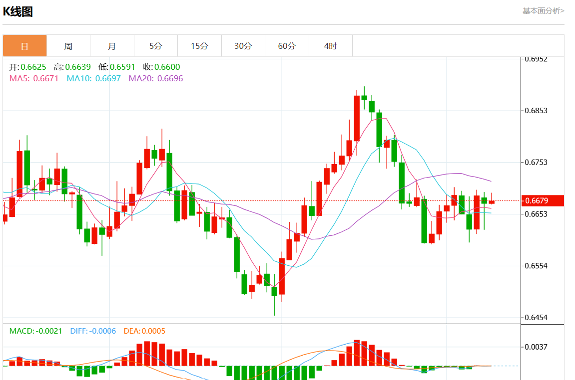 周二盘中,澳元/美元最新报0.8827,日图跌0.28% 今日分析:在0.6660上方建立多头头寸,目标在0.6700和0.6720。 技术点评:RI涨跌互现。 支撑位:0.67400.67200.6700 阻力位:0.66600.66350.6620
